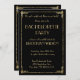 Cartons d'invitation de fête de Bachelorette Great Gatsby Art Déco à feuilles d'or avec texte personnalisable imprimé sur fond noir