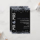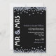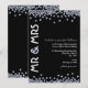 Une invitation à une fête d'anniversaire de mariage de diamant jolie et moderne en noir et blanc avec des accents bleu pâle. Sur les bords supérieur et inférieur de l'invitation sont dispersés des paillettes en forme de diamant, formant une bordure partielle. Sur le côté gauche de l'invitation figure "M. et Mme" dans une police en gras, tandis que le texte de l'invitation est aligné sur le côté droit. Un mélange amusant de styles de polices modernes a été choisi pour accentuer le design.
