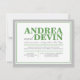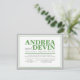 Cartes d'invitation pour la réception de mariage uniquement avec une typographie verte et grise. (Étant donné la précision de l'alignement de ce design, il est conseillé de cliquer sur le bouton orange "Personnalisez-le !" pour déplacer et redimensionner le texte si nécessaire.) Ces invitations sont utilisées lorsque le couple organise un mariage de destination ou une petite cérémonie privée, et n'invite ses invités qu'à la célébration post-mariage, réception.