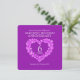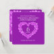 Cartons d'invitation pour anniversaire de mariage de 6 ans avec des pierres précieuses violettes. Bel effet de pierres précieuses d'améthyste violette en forme de cœur imprimé sur des cartons d'invitation pour anniversaire de mariage. Personnalisez avec vos propres détails de fête d'anniversaire de mariage de 6 ans. Le 6ème anniversaire de mariage est associé à l'améthyste et le cœur symbolise l'amour. Graphismes et conception de Sarah Trett pour www.mylittleeden.com