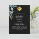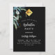 Un arrière - plan noir classique, décoré de verdure. La couleur bleue est inégale. Un casquette d'or avec l'année de graduation. Personnalisez et ajoutez un nom et des détails du parti.