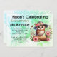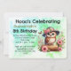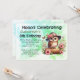 Invitation les invités avec ce hibou en casquette, assis sur un rondin aux fleurs roses. Toutes les informations de la fête sont sur le devant. Personnalisez les champs de texte, supprimez du texte ou modifiez-les à l'aide de l'outil de conception pour sélectionner un style de police, une couleur et une taille que vous souhaitez.