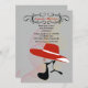 Ce dessin présente le buste d'une femme portant un casquette rouge à large bord. La toile de fond argentée présente de fines tourbillons en soie. Idéal pour les anniversaires féminins, les déjeuners féminins, etc. La carte est facile à customiser avec votre formulation, police, couleur de police et choix de six types de papier.