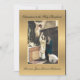 A traditional Catholic Ordination to the Holy Priesthood invitation with a beautiful traditional Catholic image of a priest offering the Eucharist at the altar during the consecration at the Holy Sacrifice of the Mass. The image of the Blessed Mother is seen in the background. The back is a gold shimmer. All text and fonts may be modified.