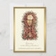 A traditional Catholic Ordination to the Holy Priesthood invitation with a beautiful image of a gold chalice with the Eucharist surrounded by pink and red roses. The border is a gold shimmer. All text and fonts may be modified.