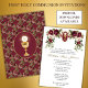 Doté d'une belle conception personnalisée traditionnelle Catholique première communion invitation avec un design floral bordeaux et rose et un chalice or et Eucharistie.