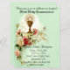 Belle Traditionnelle Première Sainte Communion Invitation. avec du chalice, de l'hôte, et des fleurs en or. L'arrière est un design vert menthe clair moucheté. Tous les textes et polices peuvent être facilement modifiés. Nous offrons également des cartes Communion assorties, des faveurs, des étiquettes, etc., avec ce design. Visitez la Douche des Roses Shoppe sur Zazzle et parcourez notre grande collection First Holy Communion.