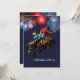 C'est une invitation recto-verso avec un cowboy chevauchant un cheval bucking sur le devant avec des feux d'artifice en arrière-plan et de nombreux champs de texte au dos pour remplir les détails de votre fête. Le numéro d'âge est censé ressembler à une marque sur la hanche du cheval.