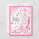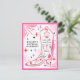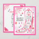 Invitation de fête d'enterrement de vie de jeune fille à thème rodéo disco avec illustration d'une botte de cowgirl avec frange, rose, éclair, coeurs et étoiles avec un schéma de couleur rouge, rose et noir. Le verso comporte l'itinéraire.