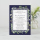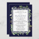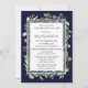 La célébration élégante d'une invitation à la vie présente un cadre d'eucalyptus vert poussiéreux simple. Un bleu foncé moderne, une couverture transparente et un arrière - plan bleu foncé lui donnent une ambiance chic. Très facile à customiser. Message-moi, si vous avez besoin de coordonner des éléments. Je suis Nelda et j'adorerais aider !
