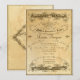 Cartes d'invitation et faire-part pour 100e anniversaire. Célébrer 100 ans de vie ! Voici une belle invitation d'anniversaire de style calligraphique formel et élégant pour une célébration spéciale qui correspond à tous les articles de la série de faire-part de mariage du même nom. Vous pouvez personnaliser l'un des produits coordonnés et ils correspondront. En utilisant une nouvelle œuvre d'art pour reproduire l'apparence d'un faire-part de mariage de style vintage. Un parchemin "vieilli" avec une teinture de thé forme l'arrière-plan de bannières courbes magnifiquement gravées de couleur brun chocolat sépia avec le style de typographie du 19e siècle, les mots courbes "Votre présence est souhaitée à" et dans une autre police de style cirque "Une fête pour un couple" et un texte antique "et". Il y a une bordure supérieure et inférieure gravée avec des bannières baroques, des volutes florales, des fleurs, des feuilles et une image de coquillage. À l'intérieur d'une bordure de séparateur en forme de courbe supérieure et inférieure avec des fioritures en volutes se trouve le texte de votre invitation de fête. Le cadre ornemental en volutes calligraphiques est une touche légère et aérienne. Au verso se trouve votre monogramme ou initiale avec le même fond teinté de thé et un