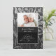 Élégante invitation pour les vingt-cinq ans de mariage sur fond de damas floral noir et argent avec une bordure accentuée d'argent pour célébrer cette date spéciale de vingt-cinq ans passés ensemble. Téléchargez une photo pour remplacer l'espace réservé. Personnalisez le texte du recto et du verso de l'invitation avec l'heure, la date, le lieu et d'autres informations.