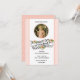 Belles invitations de brunch ou de célébration de Pâques de printemps religieux avec une image vintage de l'Enfant Jésus tenant une croix dorée sur fond de pêche, de fleurs et de pois. Tout le texte et les polices peuvent être modifiés.