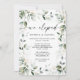Ce design élégant présente un bouquet d'aquarelle douce de eucalyptus, de verdure et d'ornements dorés. Cliquez sur le bouton Personnaliser et "Cliquez pour personnaliser davantage" pour modifier la couleur du texte. Ajoutez une photo au verso !
