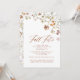 Une invitation fantaisiste à la "Fête Bohème des Fleurs Sauvages d'Automne", parfaite pour une réunion automnale. Cette invitation présente un mélange de style bohème et d'éléments rustiques d'automne, avec des fleurs sauvages délicates et des couleurs saisonnières riches comme les oranges chaudes, les rouges profonds et les bruns doux. Idéal pour une célébration cosy et inspirée de la nature, elle donne le ton pour un événement festif et élégant avec une ambiance décontractée et charmante.