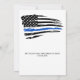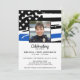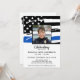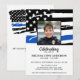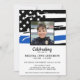 Mémorial de la Fête de la Vie de la Police de la Ligne Bleue Mince dans un drapeau américain moderne drapeau de la police couleurs drapeau. Personnalisez cette célébration du mémorial de la police de l'invitation à la vie avec la photo de votre policier, le nom et les dates et les sentiments, et les détails de l'événement. Cette célébration funéraire de la vie par les forces de l'ordre sera un trésor. Parfait pour des funérailles de police, des funérailles d'application de la loi, un service commémoratif de police ou une célébration de la vie de la police. Dans Loving Memory Police Mémorial Mince Ligne Bleue Drapeau. DROIT D'AUTEUR © 2020 Judy Burrows, Black Dog Art - Tous droits réservés. Fête De La Police De La Vie Mince Ligne Bleue Mémorial Invitation