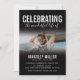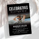 Une célébration moderne de la vie funéraire faire-part avec un gros texte audacieux avec une fusion de typographie calligraphique, une photographie de votre être aimé mélangé avec l'arrière - plan avec l'utilisation de superpositions et un modèle mémorial simple qui est facile à customiser avec vos propres détails.