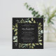 L'élégante célébration d'une invitation à la vie carré comprend un cadre botanique de baies blanches et de fleurs et feuillage sur un arrière - plan noir. Le nom de la personne décédée est écrit dans un texte traditionnel. Tout le texte peut être facilement édité pour créer un souvenir personnel.