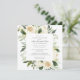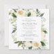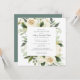 L'élégante célébration d'une invitation à la vie carré comprend un cadre botanique de fleurs blanches et de feuilles verts profonds. Le nom de la personne décédée est écrit dans un texte traditionnel. Tout le texte peut être facilement édité pour créer un souvenir personnel.