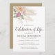 Pampas herbe moderne fêtes funéraires florales célébration de la vie invitation, avec l'herbe de pampas, brindilles d'or, fleurs, folaige et un modèle élégant qui est facilement personnalisée. Vous pouvez modifier tous les styles, tailles et couleurs de police en cliquant sur le lien personnaliser après la personnalisation.