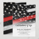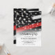 Honorez les braves avec une invitation extraordinaire à un service commémoratif funéraire de pompier. Ce souvenir unique présente le majestueux drapeau américain, la fine ligne rouge emblématique et des lumières chaudes de guirlande pour symboliser la lumière éternelle de leur service héroïque. Avec un modèle de célébration de la vie facile à personnaliser, vos mots d'amour et de respect seront parfaitement capturés dans un hommage approprié à l'esprit indomptable d'un pompier disparu.