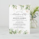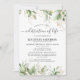 L'invitation personnalisée de mémorial funéraire est un moyen idéal d'honorer le défunt et de célébrer sa vie de manière respectueuse et digne. Avec des feuilles de eucalyptus botaniques vertes à l'aquarelle élégantes, des accents floraux dorés et un modèle de célébration de la vie facile à personnaliser.