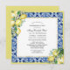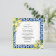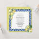 Un élégant cadre en carreaux bleus est décoré à deux coins avec un arrangement de citron jaune et de fleurs blanches. Le bord est criblé de jaune Limoncello. Un cadre carré doré scintillant définit l'intérieur.