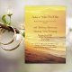 Invitation à une fête d'anniversaire de mariage ou à une cérémonie de renouvellement de vœux. L'image du lever du soleil sur la plage dorée est le fond de votre texte. Les noms en haut avec le texte de l'invitation. Cela pourrait être une cérémonie suivie d'une réception, ou une fête d'anniversaire.