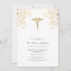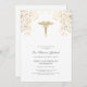 Célébrez l'incroyable réussite de votre nouveau médecin avec cette élégante invitation à la cérémonie de la blouse blanche! Doté de tourbillons d'or délicats dans les coins et d'un symbole de caducée distingué, ce design sophistiqué donne le ton parfait pour une réunion joyeuse en famille et entre amis. Personnalisez les détails pour créer un souvenir mémorable pendant que vous honorez cette étape importante de leur voyage médical.