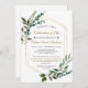 Souvenir funèbre, célébration de la vie. Cette invitation présente un cadre élégant en or faux rose, de magnifiques aquarelles, des feuilles d'eucalyptus, sur un arrière - plan blanc. Utilisez l'outil Personnaliser pour ajouter vos informations. Pour les articles correspondants, s'il vous plaît, visitez ma collection de Merci de la fête de la vie.