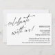 Dans cette pièce simple et élégante, la police manuscrite moderne a été utilisée pour créer un graphique représentant les mots "célébrez avec nous !". Utilisez les champs du modèle pour ajouter vos informations personnelles et rendre ce design moderne unique vôtre. L'arrière-plan peut être changé en n'importe quelle couleur que vous préférez. N'hésitez pas à nous contacter pour toute demande spéciale ou pour une aide à la personnalisation. // 158 //
