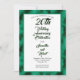 Une invitation pour les 20 ans de mariage avec un fond en feuille émeraude verte.