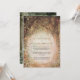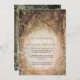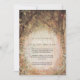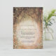 Golden, forêt enchantée Invitation funéraire avec photo à l'arrière de l'invitation. Cette Invitation photo de Célébration de la Vie présente une illustration aquarelle de la lumière du soleil qui éclate à travers les arbres dans de belles nuances d'or et de marron. Modifiez le dos de cette carte commémorative avec une photo de votre être cher.