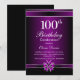 Commencez à organiser votre fête avec cette élégante invitation à fêter les 100 ans de noir et violet.