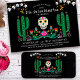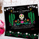 Invitation pour votre célébration de la fête des Morts. Le design présente un crâne en sucre floral, des fleurs de fiesta mexicaines, un cactus et des fanions de crâne. Jour des Morts est écrit en os et le modèle est prêt à être personnalisé avec vos détails. Veuillez parcourir ma collection de Jour des Morts pour des styles alternatifs et des articles assortis.