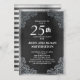 Invitation élégante et ornée de fête de 25 ans de mariage noir et argent.