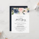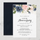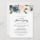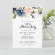 Cette invitation élégante de calligraphie florale hivernale pour les 50 ans de mariage est parfaite pour une célébration d'anniversaire moderne. Le design présente de magnifiques fleurs peintes à la main en bleu foncé, bleu, marine, rose, rose poudré, or et feuillage vert, rassemblées en bouquets élégants.