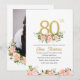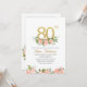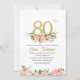 Carton d'invitation floral aquarelle pailleté pour les 80 ans élégants
