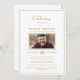 Célébration Moderne De La Vie Funéraire Faux Gold Photo Invitation. Célébration Moderne De La Vie Funéraire Blanc & Or Photo Invitation. Facile à éditer modèle d'invitation mémorial avec deux photos avant et arrière en bleu marine et faux or. Personnalisez Instant télécharger l'invitation funéraire numérique avec des images.