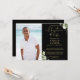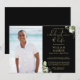 Elegant modern black and gold, garden greenery, funeral celebration of life remembrance photo invitation. Designed by Thisisnotme©