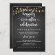 Magnifique tableau noir rustique moderne, guirlande lumineuse de ferme, Annonce de mariage élégant, Carte d'invitation (Célébration pour toujours heureuse). C'est parfait pour votre réception de mariage et la fête de célébration après le mariage. Ajoutez vos détails dans la même police / lettrage.