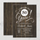 Invitation rustique pour une fête de 50 ans de mariage avec motif en bois brun foncé. À 50 ans de bonheur ! Parfait pour une célébration élégante.