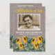 Célébrez la vie de vos proches avec nos invitations à thème rustique. Dotées d'un décor chaleureux en bois de canne, de tournesols jaunes radieux et d'un espace adapté à 2 photos de conservation significatives, ces invitations combinent harmonieusement la grâce avec la personnalisation. Le modèle mémorial facile à utiliser rend simple la transformation de ces invitations en rappels intemporels d'une vie vécue pleinement et profondément aimée.