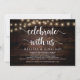 Célébrez avec nous, Carte d'annonce / invitation de mariage intime, en Bois de ferme Rustique, conception de guirlandes lumineuses. C'est parfait pour votre réception de mariage et votre fête de célébration post-mariage. Ajoutez vos détails dans la même police / lettrage.