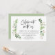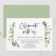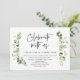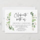Carte d'invitation de mariage sur le thème des feuilles verdoyantes de jardin d'été, avec écriture noire moderne (Célébrez avec nous). Elle est parfaite pour votre réception de mariage intime ou pour la fête de célébration après le mariage. Ajoutez vos détails avec une police / écriture noire assortie.