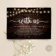 Marquez le début de votre éternité avec l'élégance rustique à l'aide de notre cottage et des lampes à cordes de village bois brun foncé thème arrière - plan, mariage elopement carte d'invitation à la célébration, "Célébrez avec nous". Parfait pour les couples qui souhaitent profiter de leur joyeux événement, cette invitation exhale le raffinement avec un soupçon de jeu, préparant le terrain pour un événement mémorable. Décoré avec un thème design contemporain intemporel, il ajoute une touche de charme raffiné à vos festivités. Conçu par TeeshaDerrick, cette invitation promet de capturer magnifiquement votre histoire d'amour.