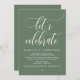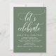 Marquez le début de votre éternité avec élégance grâce à notre carte d'invitation à la célébration mariage contemporaine de sauge verte, "Fêtons", brunch, déjeuner, dîner, fête et danse. Parfait pour les couples qui souhaitent profiter de leur joyeux événement, cette invitation exhale le raffinement avec un soupçon de jeu, préparant le terrain pour un événement mémorable. Décoré avec un thème design contemporain intemporel, il ajoute une touche de charme raffiné à vos festivités. Conçu par TeeshaDerrick, cette invitation promet de capturer magnifiquement votre histoire d'amour.