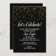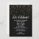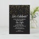 Invitation Célébrons les Confettis Dorés sur Fond Noir de Rem