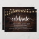 Célébrons, Carte d'annonce / d'invitation de mariage en fuite, en Bois de ferme rustique, conception de lumières de chaîne. C'est parfait pour votre réception de mariage et votre fête de célébration post-mariage. Ajoutez vos détails dans la police / lettrage assorti.