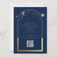 Celestial Blue Gold QR Code Quinceañera Invitations dispose d'un élégant soleil doré, lune et étoiles avec un cadre doré sur un arrière - plan bleu. À l'intérieur est votre Quinceañera personnalisée d'informations d'invitation. Au verso, ajoutez des informations supplémentaires telles que votre site Quinceañera et votre code QR. Personnalisez en modifiant le texte dans les zones de texte. Conçu pour vous par Evco Studio www.zazzle.com/store/evcostudio